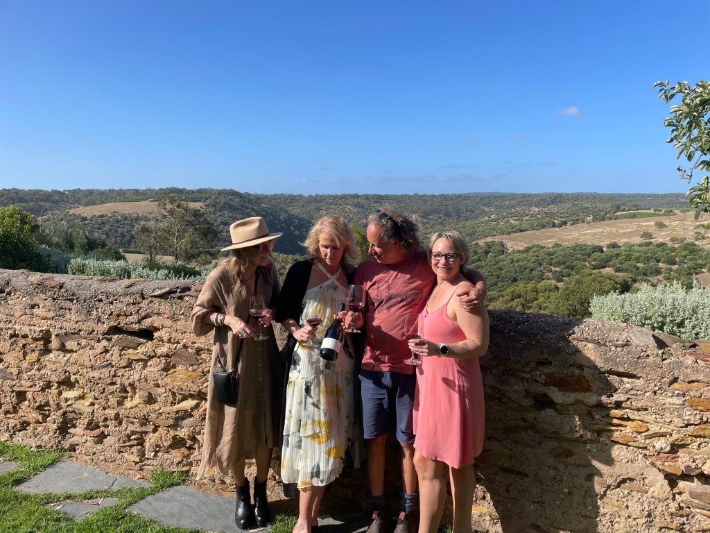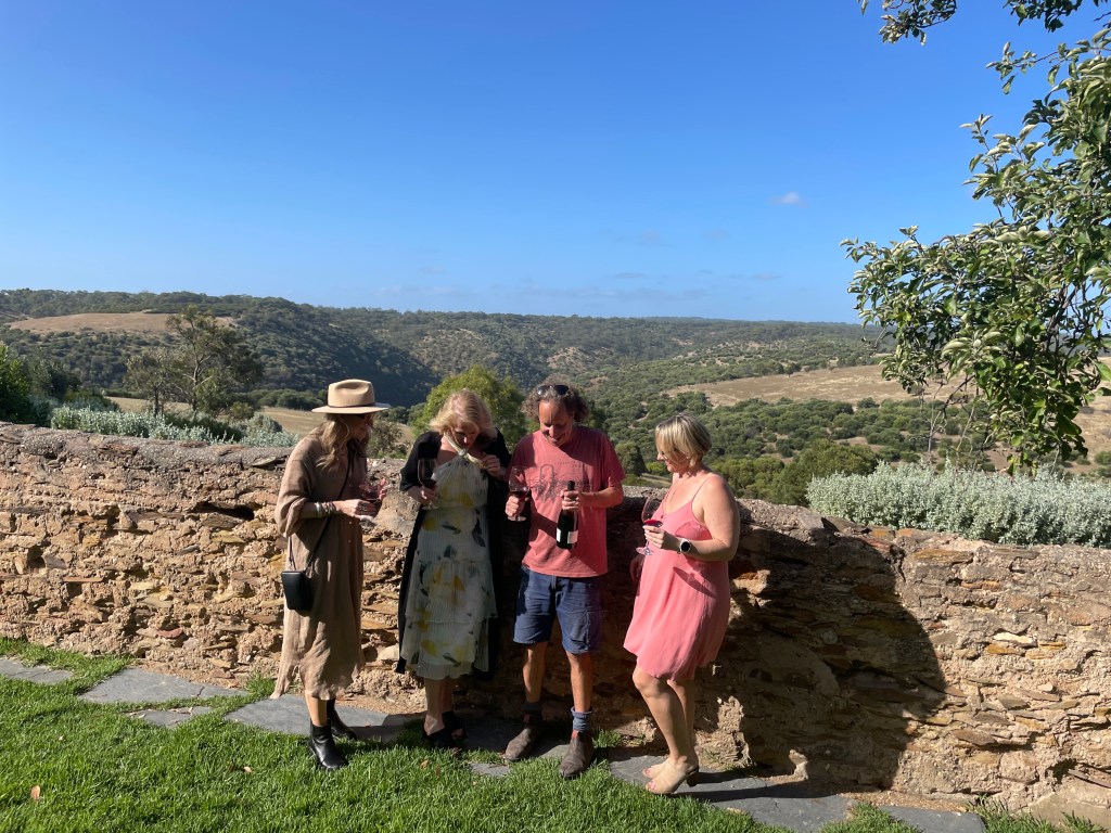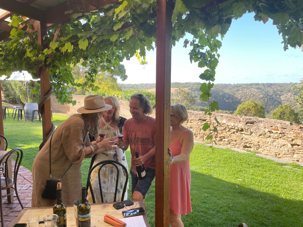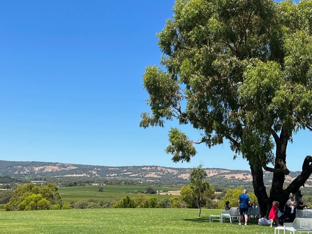 Chalk Hill’s modern cellar door is nestled in the hilltop of its Chalk Hill vineyard planted in 1969 and is one of the family’s six McLaren Vale region vineyards. Chris shared with us the “top of the shop” Alpha Crucis label wines made by notable winemaker, Renae Hirsch, who also makes wines for award-winning Hugo Wines. We tasted the 2021 Mataro Grenache (a wine club exclusive) and 2020 Syrah from 4 vineyards- Blewitt Springs, Clarendon, Sea View, and McLaren Vale. Our favourite of all was the 2020 Syrah Clarendon which we also selected as our sunset wine.