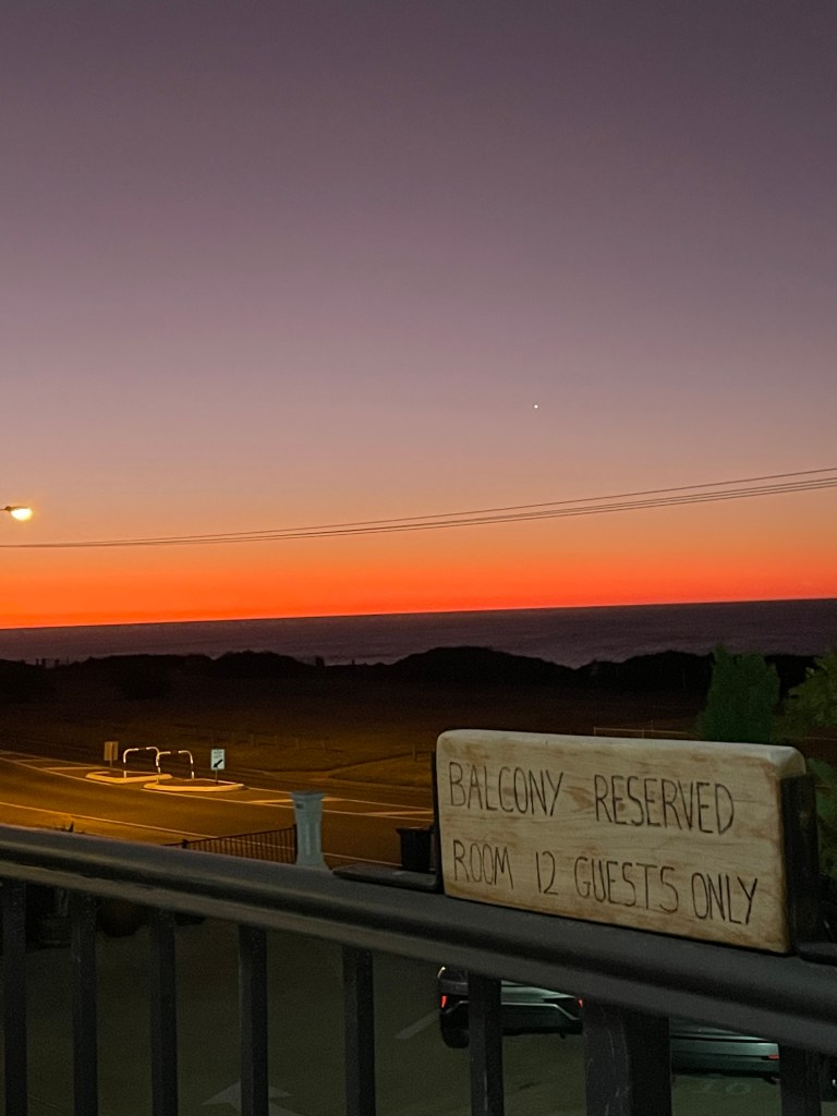 Dinner and sunset: Port Burger via Uber Eats to Coast Motel & Apartments (too much wine lol)
