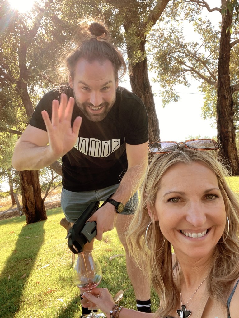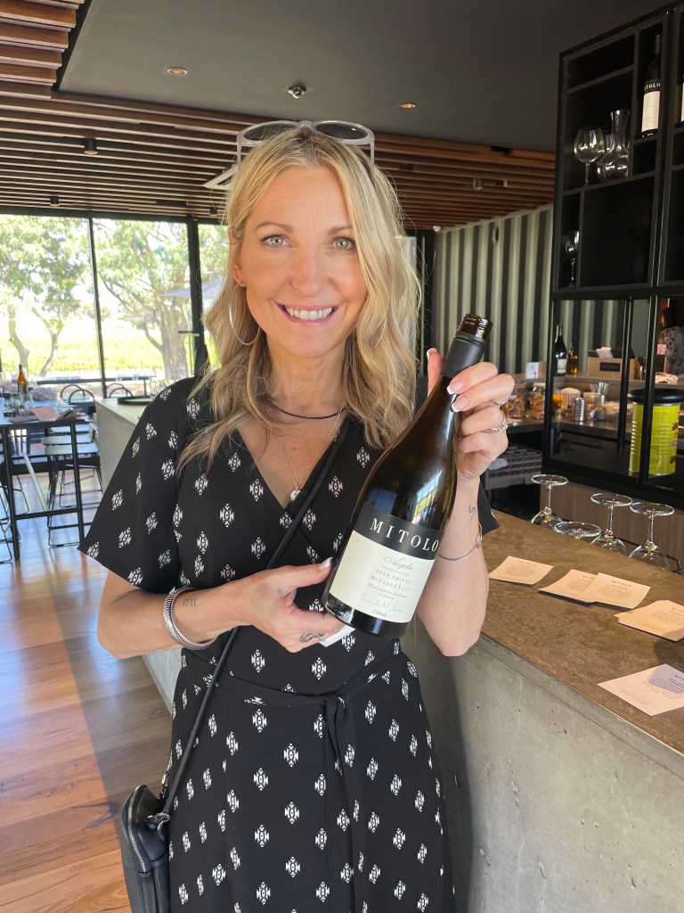My #1 favourite at the end of the tasting was the 2019 Angela Shiraz. It’s a gorgeous wine with a fabulous story. The wine is dedicated to the mothers of the winemaker and the wine grower. The grapes for the Angela Shiraz (which is the name of Frank Mitolo’s mother) are sourced from Sandra’s Block (the namesake of the matriarch of the grape growers, the Lopresti family). It is obvious at Mitolo Wines that ‘Famiglia’ is everything and I love that. In that spirit, I dedicated this tasting to my little sis who is also named Angela. Cheers to family and friends and good times. How fun is this photo!