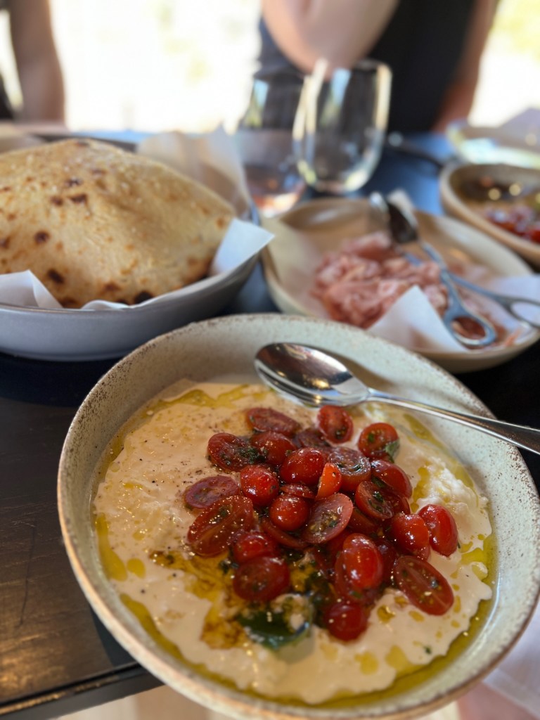 This cellar door is impressive, very modern, very fancy, very popular and very busy. You definitely need a reservation to get in. We booked the Mitolo Master Class which gave us a tasting of seven Mitolo wines and small plates locally sourced by the kitchen. That pita bread – Buono!